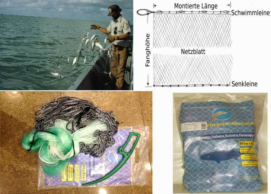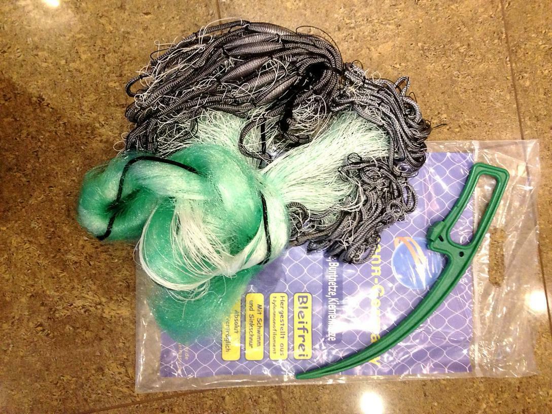 Das Stellnetz ist mit Bleifreien Senkgewichten (Sinkschnur) sowie Schwimmern fertig ausgestattet.
