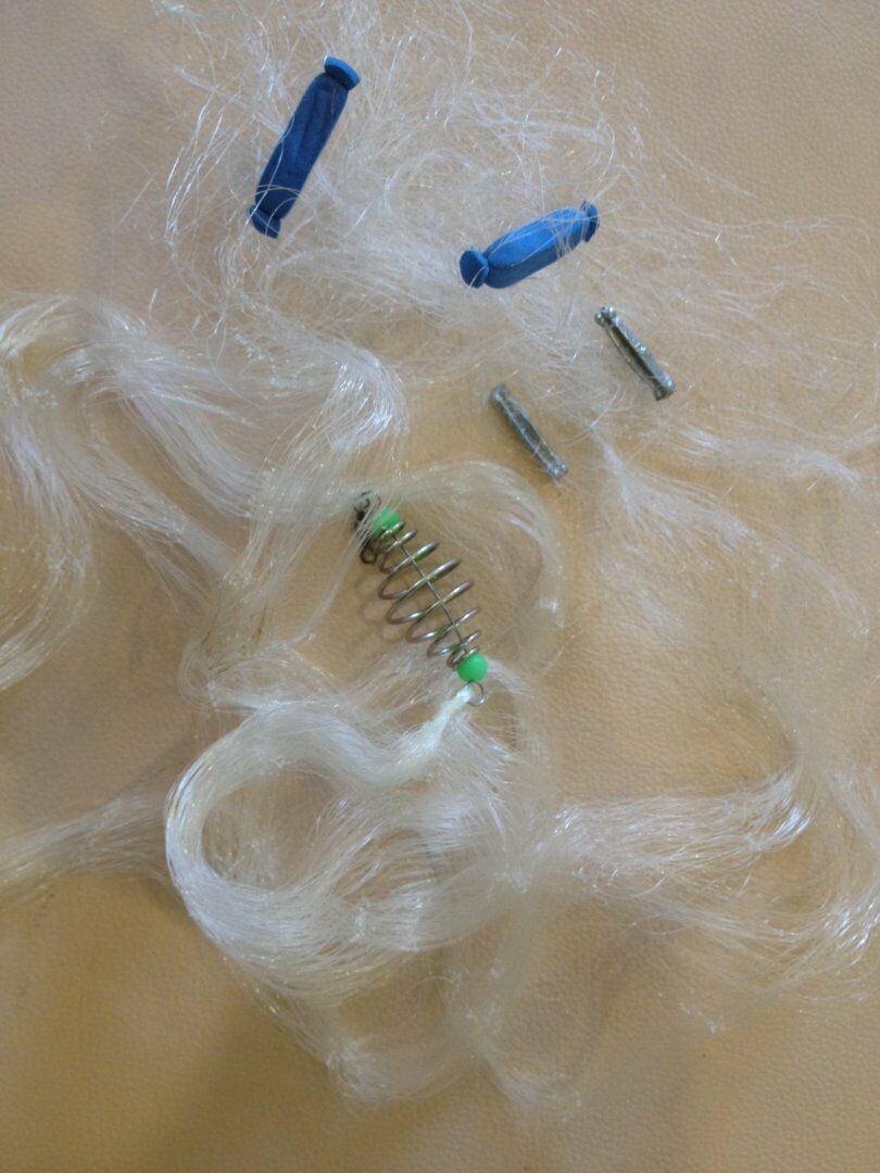Das Mini-Stellnetz ist ausgerüstet mit einer Futterspirale aus Metall, an der 2 Stellnetze befestigt sind. An jedem