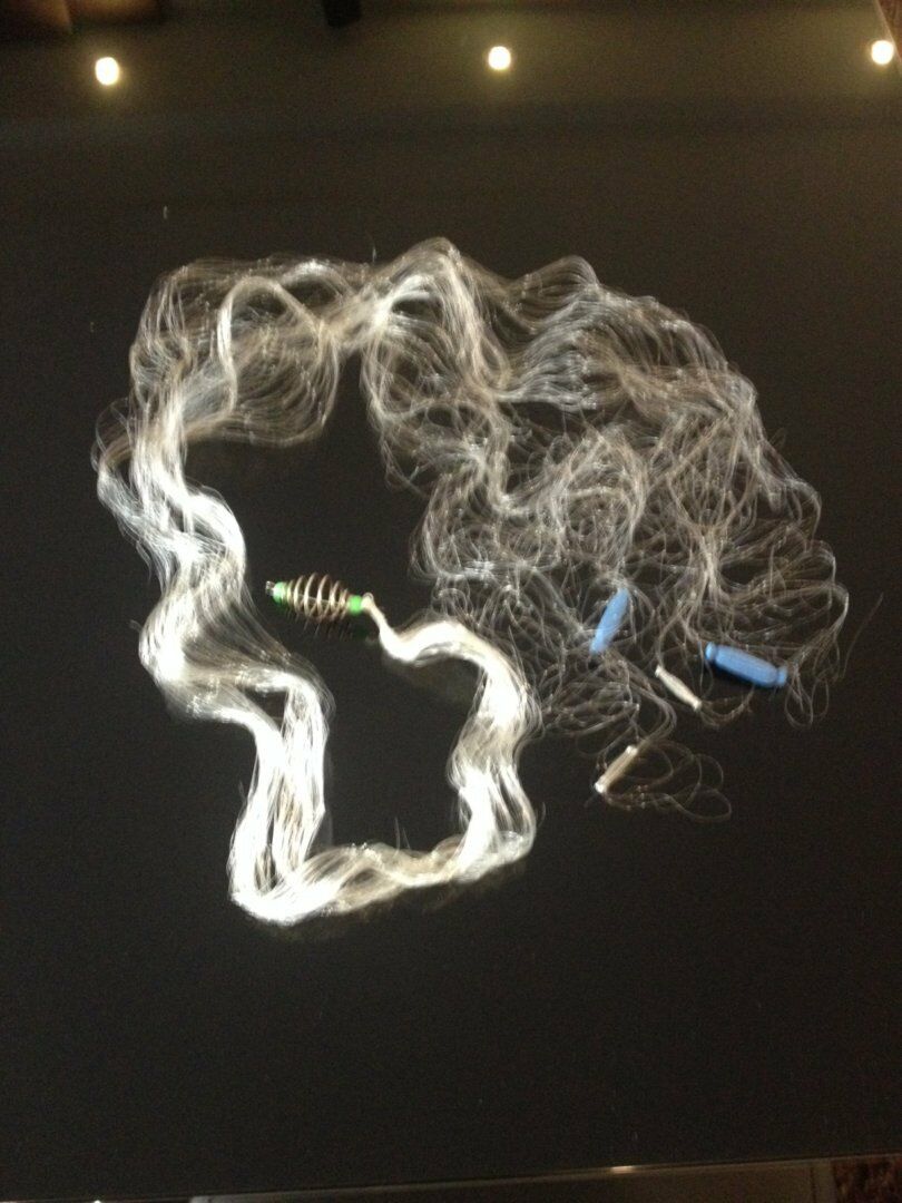 Stellnetz sind 1 Senker sowie 1 Schwimmer befestigt. Somit kann dieses Mini-Stellnetz von alleine im Wasser