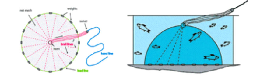 zusammenzieht und die Fische somit wie in einem Sack gefangen